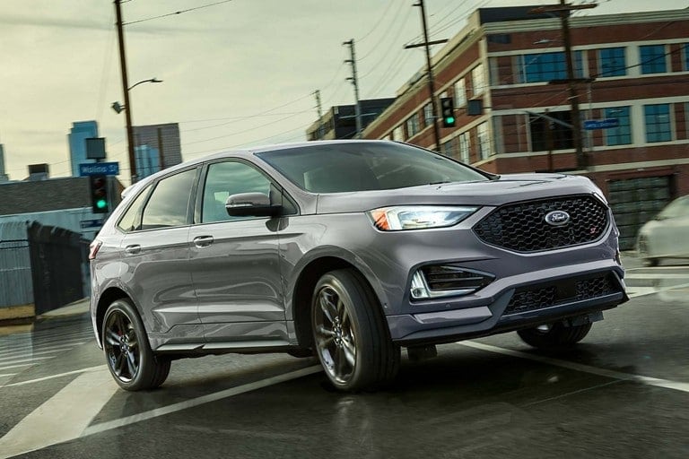 You'll have ample oomph for merging onto the Portland-Salem Expressway with the new Ford Edge. It comes standard with a turbocharged 250-horsepower four-cylinder engine, but a twin-turbocharged 335-horsepower V6 is available. The base engine pairs with an eight-speed automatic transmission, but ST models use a seven-speed automatic. When properly equipped, the Edge gets 21 mpg in the city and 28 mpg on the highway.